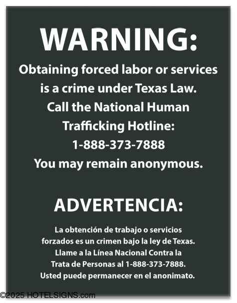 Human Trafficking Notice - Texas Code (English/Spanish)