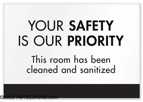 - Place on counter tops to inform guests that the room has been cleaned and sanitized.