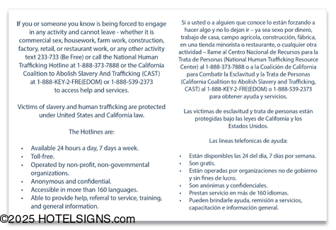Human Trafficking Notice - California Code (English/Spanish)