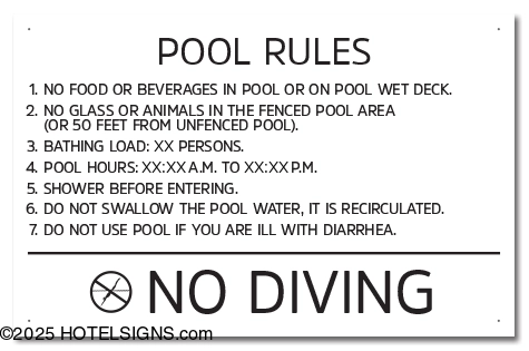 Designed in accordance with 2023 Florida Building Code, Section 454.1 for swimming pools. Check with your inspector to ensure this sign meets all code requirements for your city or county.