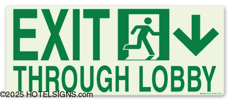 Photoluminescent Emergency "Exit Through Lobby" Sign - Right
