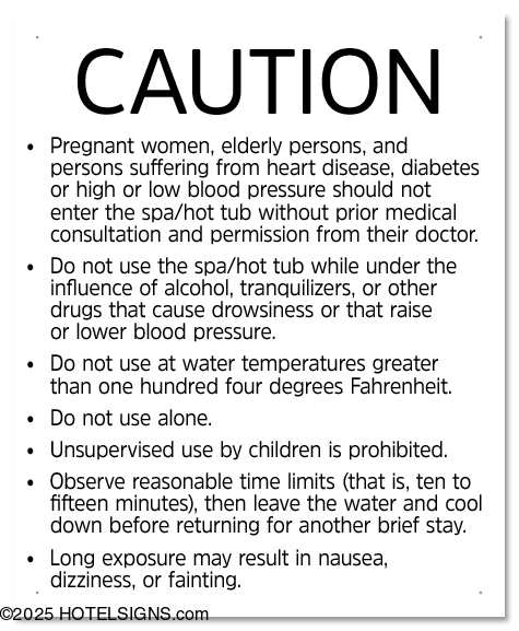 This sign was designed in accordance with Ohio Administrative Code, Section 3701-31, Rule 4(E)(3)(e) for Spas.