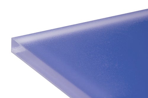 - Clear acrylic, purple gradient background, and digitally printed text.