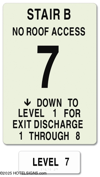 NOTE: Package includes MEA-certified photoluminescent stairway ID sign and tactile level ID sign.