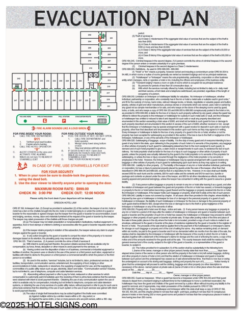 Evacuation Plans w/State Laws, Flip Art & Check In/Out Times - Oregon Code