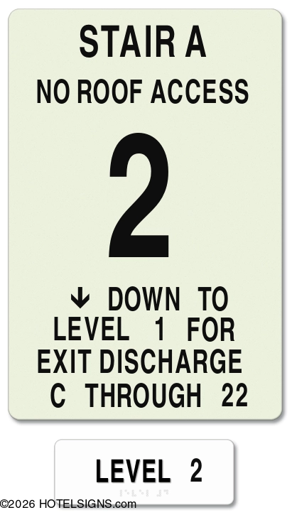 NOTE: Package includes MEA-certified photoluminescent stairway ID sign and tactile level ID sign.