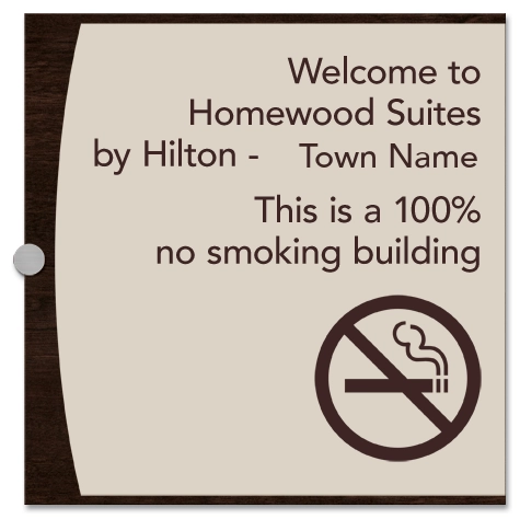 Smoking Policy: If the hotel is 100 percent non-smoking, signage must be placed and visible at the front entrance and must not be placed directly on the front doors or at front desk. Additional signage must be displayed designating the entire floor as non-smoking and be placed under the room directional signage at the elevator lobby.