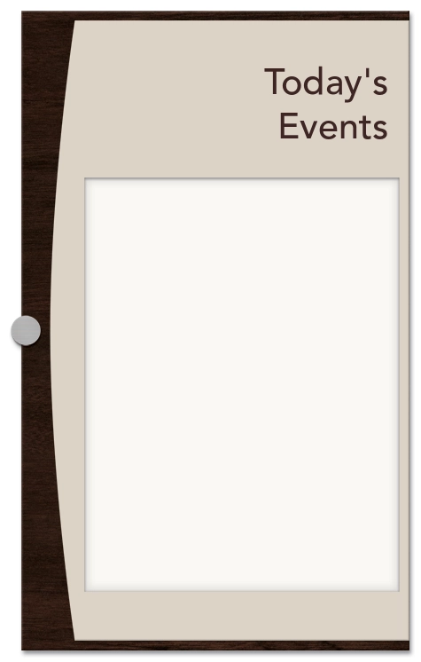 - Changeable 8.5" x 11" insert slot for easy updating and to inform guests and staff of meeting schedules and provide indication of room in use.
