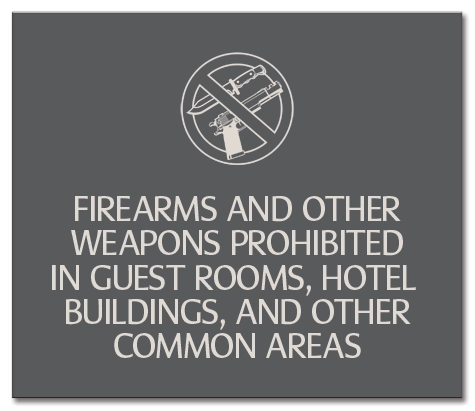 - Use to inform guests that weapons are not allowed on the property.