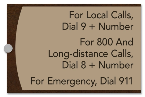 - Use to inform guests about numbers for local calls, long-distance calls, and emergencies.