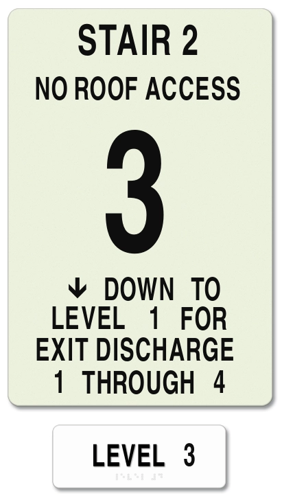 NOTE: Package includes MEA-certified photoluminescent stairway ID sign and tactile level ID sign.