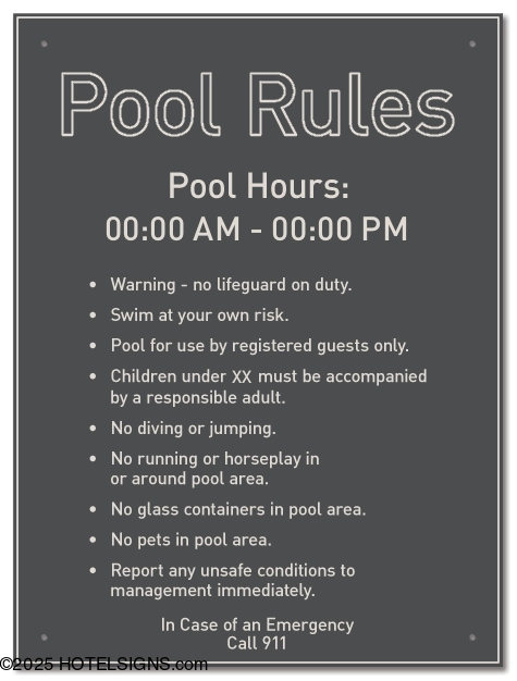 - Use to inform guests of the pool rules.