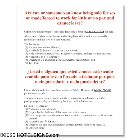 Human Trafficking Notice - South Carolina Code (English/Spanish)
