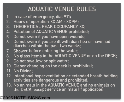 Use to inform and warn guests of aquatic venue rules and policies in New Mexico.