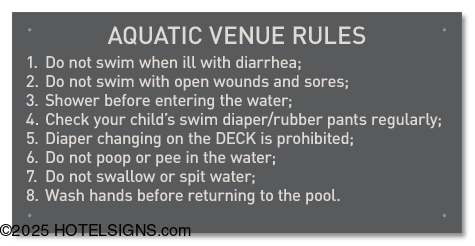 Use to inform and warn guests of aquatic venue rules and policies in New Mexico.