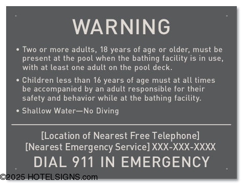 This sign was designed in accordance with New York State Sanitary Code, Part 6-1.23(vi) for Swimming Pools.