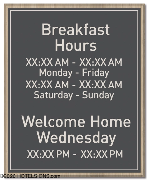 - Use to inform guests of the breakfast and Welcome Home Wednesday hours.