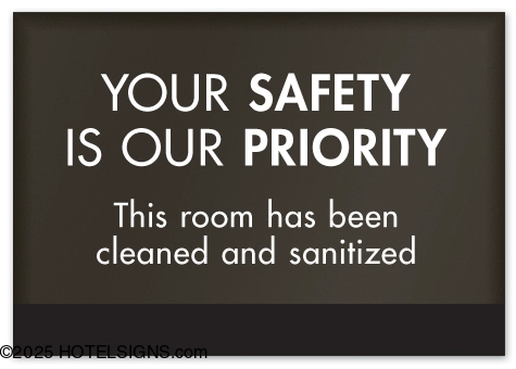 - Place on counter tops to inform guests that the room has been cleaned and sanitized.