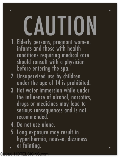Elderly persons, pregnant women, infants and those with health conditions requiring medical care should consult with a physician before entering the spa.