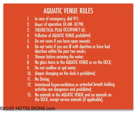 Use to inform and warn guests of aquatic venue rules and policies in New Mexico.