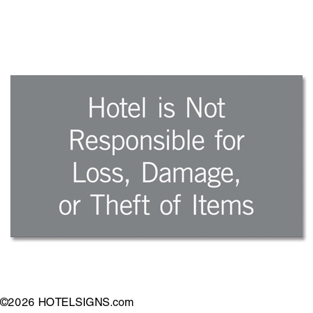 Use to inform guests that the hotel is not responsible for loss, damage, or theft of items.