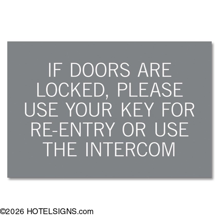- Use to inform guests to use their key or the intercom for re-entry.
