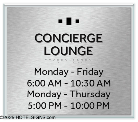 Customize up to 6 lines of text. Suggested phrases: "24 Hour Business Center," "Concierge Desk," "Guest Laundry."
