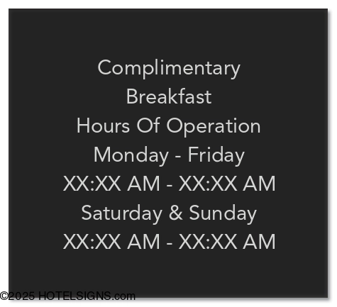 - Customize up to 10 lines of text. Suggested phrases: "Complimentary Breakfast Hours," "Gift Shop Hours," etc.