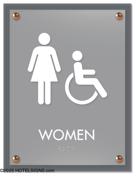 Standard woman and wheelchair accessible symbols.