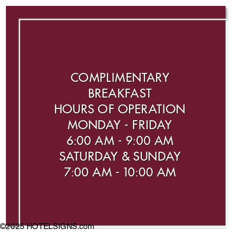 Customize up to 12 lines of text. Suggested phrases: "Complimentary Breakfast Hours," "Gift Shop Hours," etc.