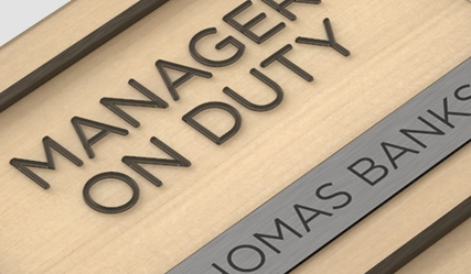 manager on duty sign w/ nameplate