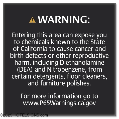 NOTE: This sign must be installed at a location where employees would store or retrieve cleaning supplies, and the sign must be displayed in such a conspicuous and readable manner as to allow for notification before exposure.