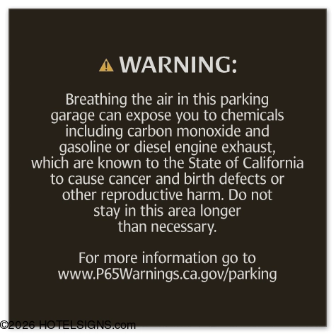 Warning Sign: Enclosed Parking Facilities - California Code