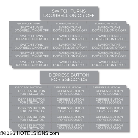 - Set includes: Thirty (30) Depress Button and thirty (30) Doorbell Switch labels.