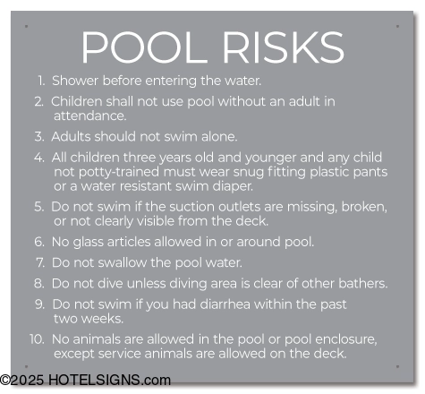 Inform and warn guests of pool risks with the Georgia Pool Risks Warning Sign (SPS-PL3538-GA). This sign is required for the state of Georgia.