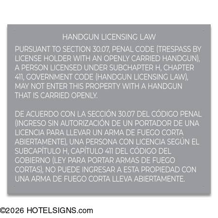 (page 5) code number. Properties that allow concealed carry but not open carry must have 30.07 (page 5) code number. Properties who do not allow either open and concealed carry guns must purchase both signs.