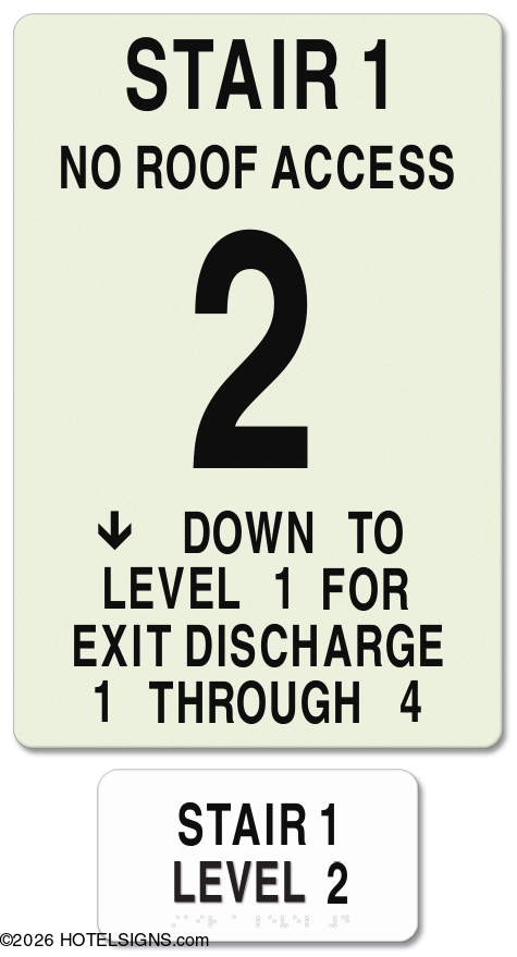 NOTE: Package includes MEA-certified photoluminescent stairway ID sign and tactile level ID sign.