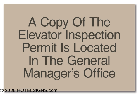 - Use to inform guests and staff members where the elevator inspection permit is located.