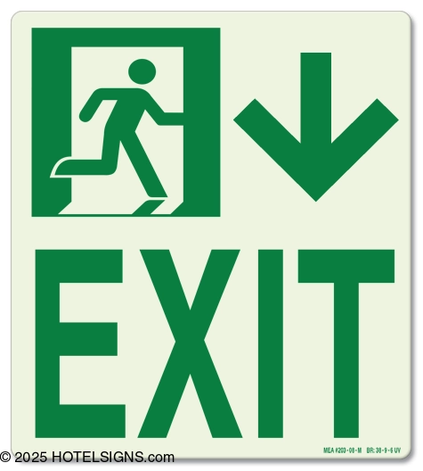 - Use on doors within exit stairway enclosures and exit passageway enclosures to indicate the direction of egress in high-rise buildings.