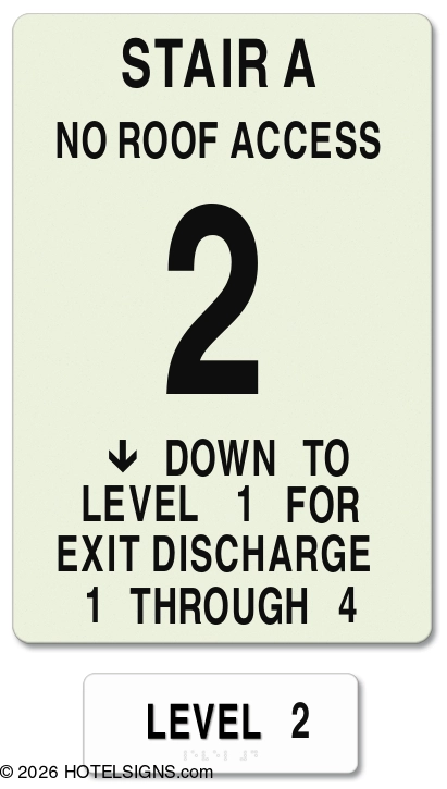 NOTE: Package includes MEA-certified photoluminescent stairway ID sign and tactile level ID sign.