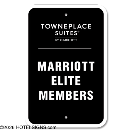 Includes one (1) TownePlace Suites Marriott Elite Members parking sign.