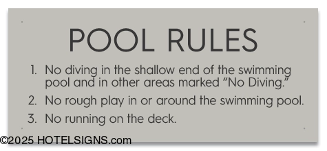 - Use to inform and warn guests of pool rules and policies in Iowa.