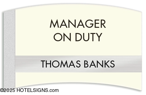 - Identifies the manager on duty and can easily be updated at shift changes.