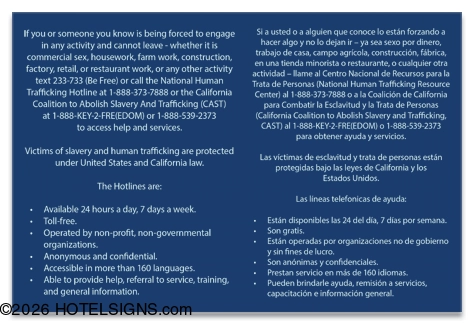Human Trafficking Notice - California Code (English/Spanish)