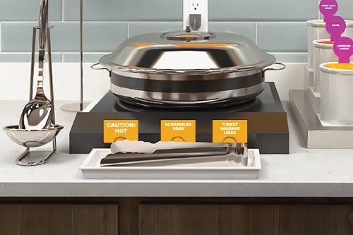- Includes one (1) graphic of each: Caution: Hot, Scrambled Eggs, Pork Sausage, Cheese Omelets, Egg White Frittatas, Western-Style Frittatas, Hardwood Smoked Bacon, Maple-Smoked Sliced Pork, Turkey Sausage Links, English Muffins, Quick Breads, Muffins.