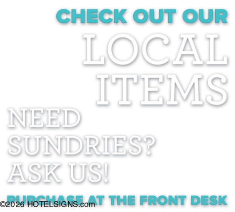 - Package includes: One (1) set of "Need Sundries? Ask Us! Purchase At The Front Desk" and One (1) set of "Check Out Our Local Items."