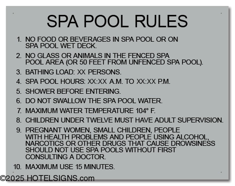 Use to inform and warn guests of spa pool rules and policies in Florida.