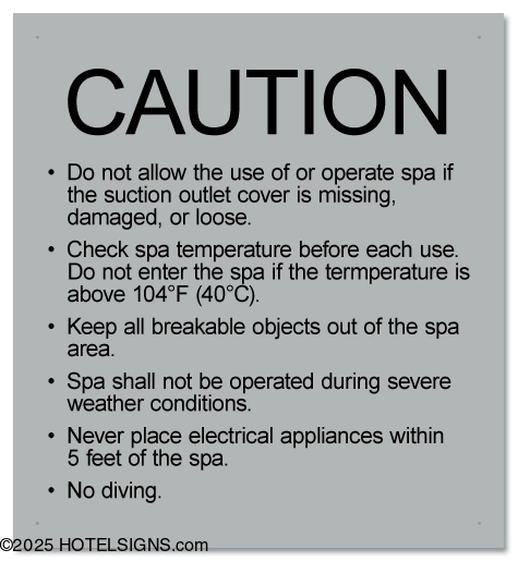 Use to inform and warn guests of spa rules and policies.
