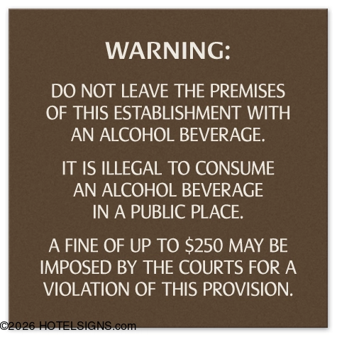 Used to warn guests and staff members about alcohol restrictions and fines.