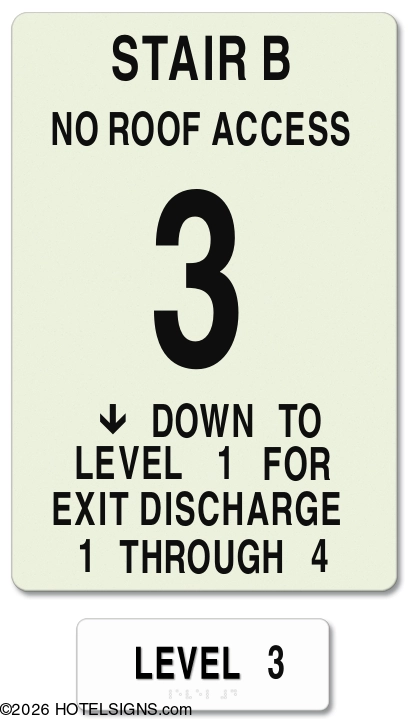 NOTE: Package includes MEA-certified photoluminescent stairway ID sign and tactile level ID sign.